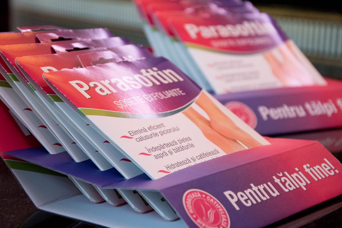 industry, a soft and silky breakfast at Cafe Athenee Palace Hilton, where they discovered a unique and revolutionary beauty product: Parasoftin socks. Only with natural ingredients, from the first use, they remove the hard skin from the feet and callus. In 7 days, Parasoftin helps you to have baby feet and with such a promise, even though was a rainy morning, Cafe Athenee was full with beautiful ladies thrilled by this magic inovation. At the beginning of the fall, we prepared our ladies to shine at the most glamorous parties and over 90 posts and reviews on the internet about Parasoftin were revealed in the next period.